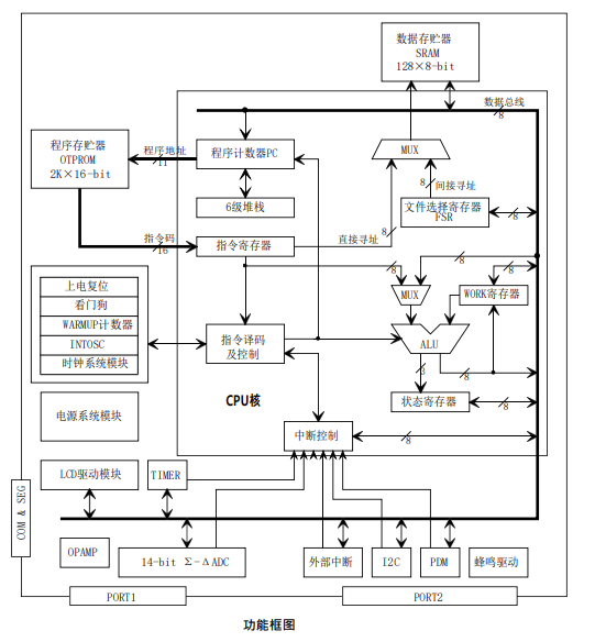 | ○ | 8K*16bits OTP ROM(能分為4K和4K兩次使用) | ○ | 256*8bits SRAM | |