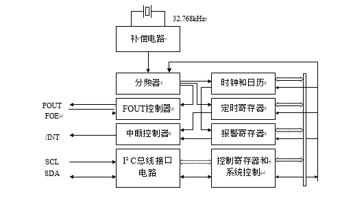 | ○ | 時(shí)間更新中斷功能 | ○ | 32.768kHz 頻率輸出(具有使能OE 功能) | |