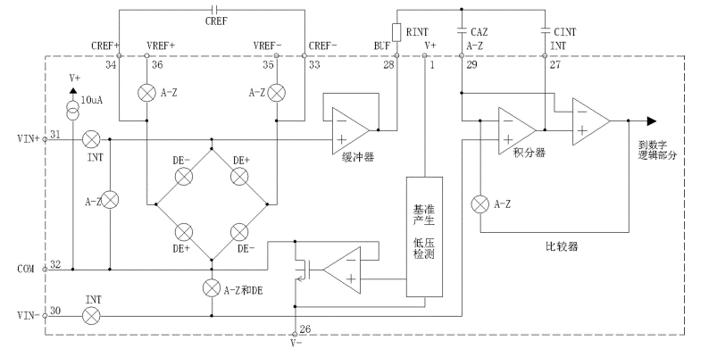 | ○ | 輸入電流低(1pA),低功耗(10mW) | ○ | 內(nèi)置精密帶隙基準(zhǔn)源,溫度漂移低。 | |