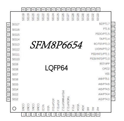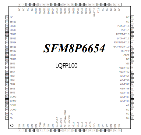 | ○ | LVD 低電壓檢測(cè)功能,具有 14 段檢測(cè)電壓選擇與外部輸入電壓檢測(cè)功能 | ○ | 模擬電壓源 VDDA 2.4V,具有 10mA 穩(wěn)壓電源輸出能力 | |