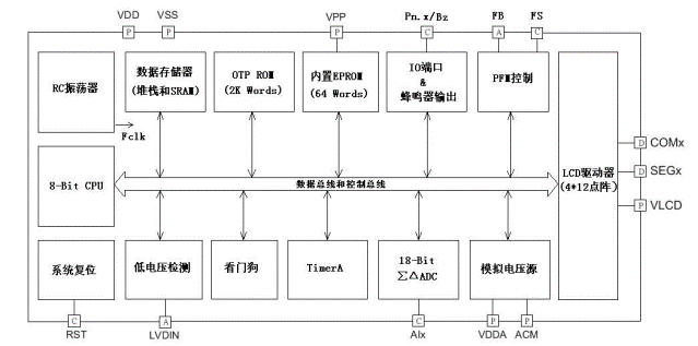 | ○ | 存儲(chǔ)器空間:2K Words OTP ROM、128 Bytes SRAM、6級堆??臻g | ○ | 8-Bit TimerA | |